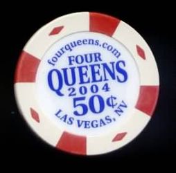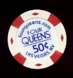 | 72. | Four Queens Las Vegas NV, 0.50 White chip, 4 red inserts, 4 red diamond inserts, circle inlay, 2004