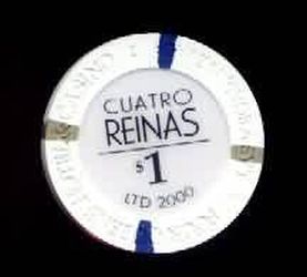 | 81. | Four Queens Las Vegas NV, 1.00 White chip, Cuatro Reinas, house mold, 2 brown / 2 dark blue inserts