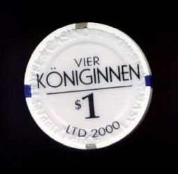 | 82. | Four Queens Las Vegas NV, 1.00 White chip, Vier Koniginnen, House mold, 2 brown / 2 dark blue inserts