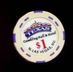 | 259. | Texas Gambling Hall & Hotel Las Vegas NV, 1.00 Tan chip, blue inserts, circle inlay