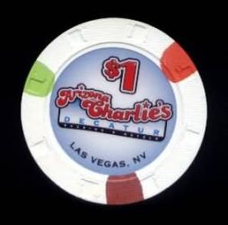| 8. | Arizona Charlie's Decatur Las Vegas NV, 1.00 White chip, H&C mold, circle inlay, purple/green/red inserts