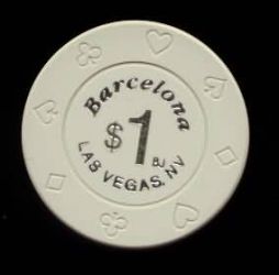 | 14. | Barcelona Casino Las Vegas NV, 1.00 Bud Jones chip, 8Suits mold, circle inlay, hotstamped