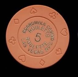 | 23. | Boardwalk Casino Las Vegas NV, Peach chip, 8Suits mold, circle inlay, hotstamped, Roulette