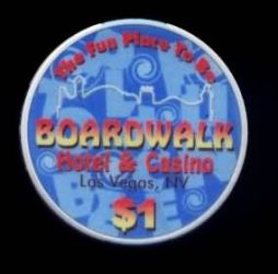 | 25. | Boardwalk Casino Las Vegas NV, 1.00 Satin finish, blue/light blue design, orange/yellow letters
