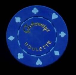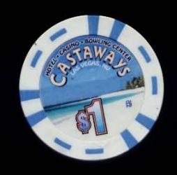| 39. | Castaways Las Vegas NV, 1.00 White chip, Bud Jones, circle inlay, blue inserts, beach scene