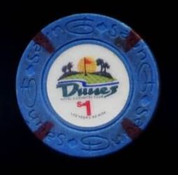 | 46. | Dunes Las Vegas NV, 1.00 Blue chip, house mold, circle inlay, 4 brown inserts