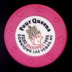 | 85. | Four Queens Las Vegas NV, 2.50 Pink chip, suits mold, circle inlay, 1995 Snapper