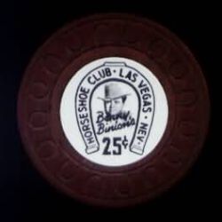 287. | Horseshoe Las Vegas NV, 0.25 Maroon chip, Arodie mold, circle inlay, denomination in horseshoe, Binion's