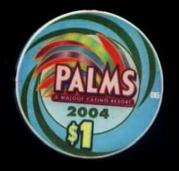 | 204. | Palms Las Vegas NV, 1.00 Light blue chip, dark green swirl design, Palms in large white letters, year 2004