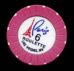 | 208. | Paris Las Vegas NV, Red chip, 12 small yellow inserts, circle inlay, Eiffel Tower, roulette table 6