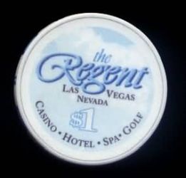 | 221. | Regent Las Vegas NV, 1.00 White chip, smooth finish, blue inserts on rim, waterfalls design