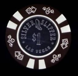 | 242. | Silver Slipper Las Vegas NV, 1.00 Brown chip, 6 white inserts, DieSuits mold, coin center, circle inlay