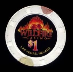 | 283. | Wildfire Casino Las Vegas NV, 1.00 White chip, 1 mustard / 1 brown triangle inserts, black circle inlay, fire design