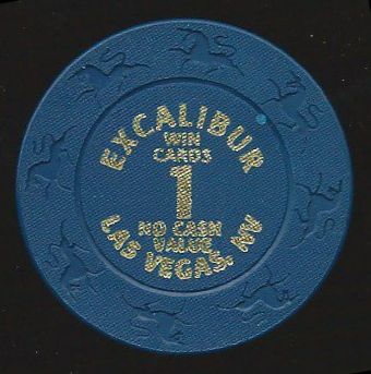 | 55. | Excalibur Las Vegas NV, 1.00 Navy chip, hotstamped, unicorn mold, NCV, Win Cards