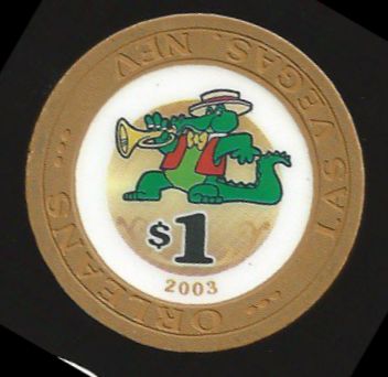 | 196. | Orleans Las Vegas NV, 1.00 Tan chip, trumpet-playing alligator, 2003