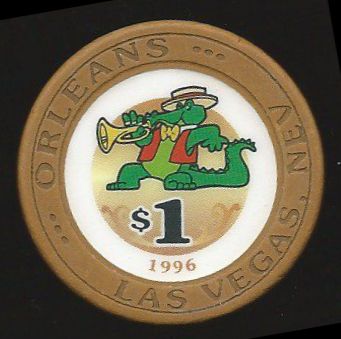| 195. | Orleans Las Vegas NV, 1.00 Tan chip, trumpet-playing alligator, 1996