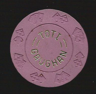 | 265. | Toti Gaughan Las Vegas NV, Purple chip, DieCards mold, hotstamped, dealer's school