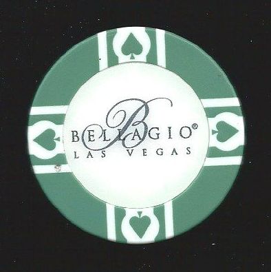 | 15. | Bellagio Las Vegas NV, Green chip, plain mold, 4 white spades inserts, WSOP, NCV
