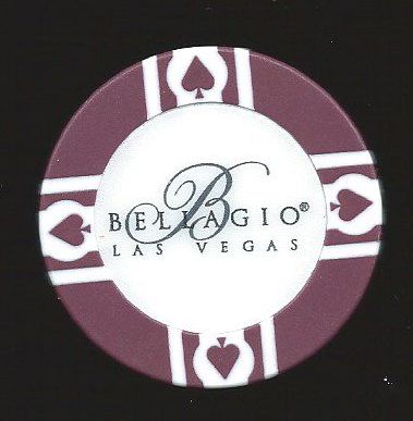 | 16. | Bellagio Las Vegas NV, Maroon chip, plain mold, 4 white spades inserts, WSOP, NCV