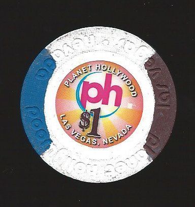 | 211. | Planet Hollywood Las Vegas NV, 1.00 White chip, house mold, 2 wide purple inserts, circle inlay, PH