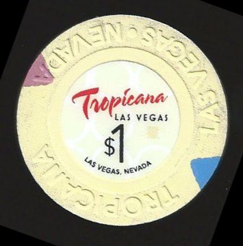 | 269. | Tropicana Las Vegas NV, 1.00 Off-white chip, BudJones mold, 2 red inserts, circle inlay