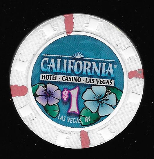 | 33. | California Hotel Las Vegas NV, 1.00 White chip, H&C mold, 4 red inserts, flowers