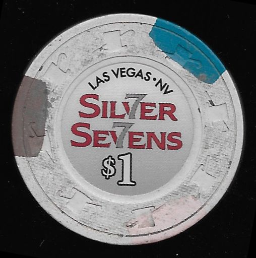 | 241. | Silver Sevens Las Vegas NV, 1.00 White chip, H&C mold, purple / brown / pink inserts