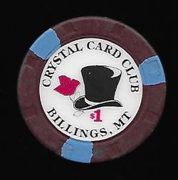 | 4. | Crystal Card Club Billings MT, 1.00 Black chip, 3 blue inserts, circle inlay, top hat and rose design