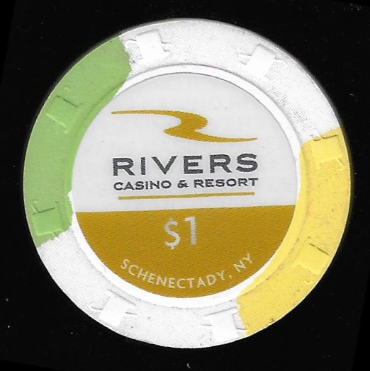 | 11. | Rivers Schenectady NY, 1.00 White chip, 1 green / 1 yellow inserts, H&C mold
