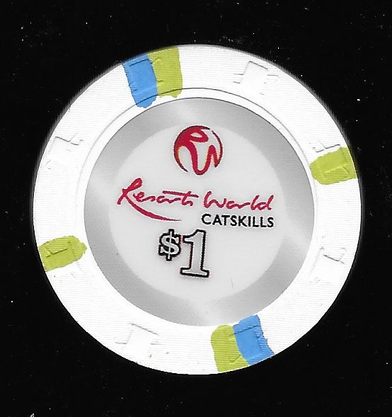 | 9. | Resorts World Catskills Monticello NY, 1.00 White chip, 2 green / 2 blue-green inserts, H&C mold