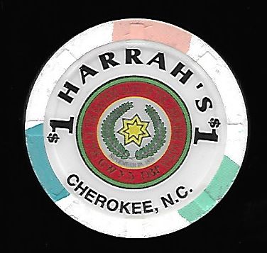 Cherokee NC, 1.00 White chip, 3 wide insert, Cherokee Nation symbol