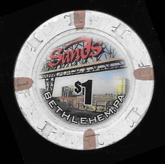 | 7. | Sands Bethlehem PA, 1.00 White chip, H&C mold, 4 tan inserts, circle inlay