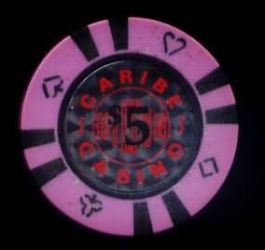 | 3. | Carib-Inn San Juan Puerto Rico, 5.00 Red chip, HCE mold, 3 gray inserts