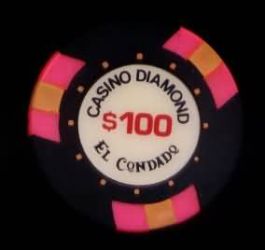 | 10. | Casino Diamond El Condado Puerto Rico, 100.00 Black chip, 3 red/orange/red inserts, circle inlay