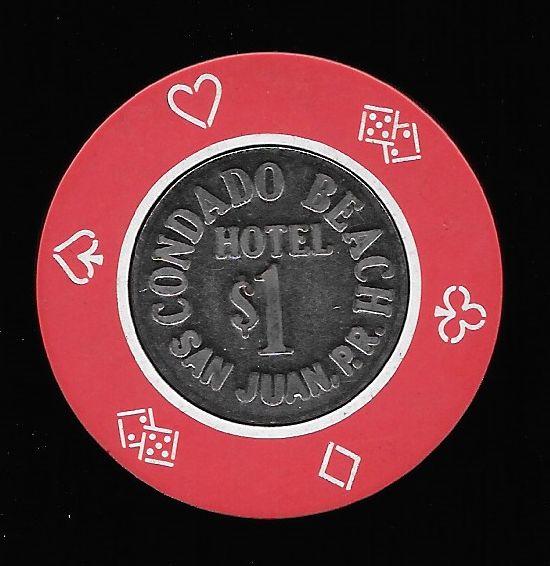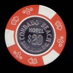 | 18. | Condado Beach Hotel San Juan Puerto Rico, 20.00 Red chip, 3 white inserts, suits/die inserts, metal inlay