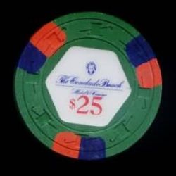 | 19. | Condado Beach Hotel San Juan Puerto Rico, 25.00 Green chip, 3 purple/orange inserts, H&C mold, hexagon inlay