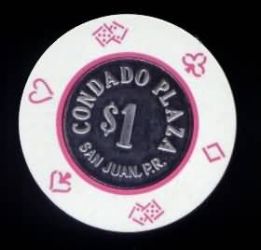 | 24. | Condado Plaza San Juan Puerto Rico, 1.00 White chip, suits/die mold, metal inlay