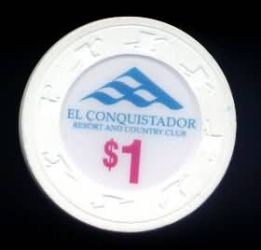 | 28. | El Conquistador Fajardo Puerto Rico, 1.00 White chip, H&C mold, circle inlay