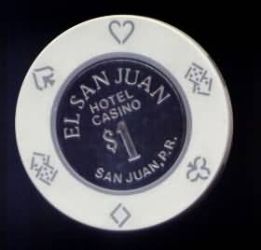 | 29. | El San Juan San Juan Puerto Rico, 1.00 White chip, 4 suits / dice inserts, metal inlay