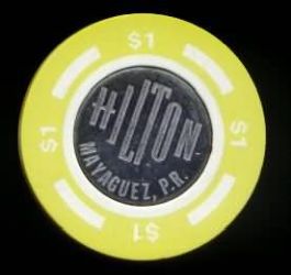 | 37. | Mayaguez Hilton Mayaguez Puerto Rico, 1.00 Yellow chip, 4 horizontal white inserts, metal inlay