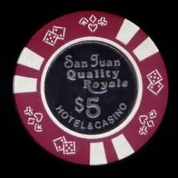 | 49. | Quality Royale San Juan Puerto Rico, 5.00 Maroon chip, white inserts, coin center, DieSuits mold
