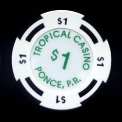 | 61. | Tropical Casino Ponce Puerto Rico, 1.00 White chip, 8 black inserts, circle inlay