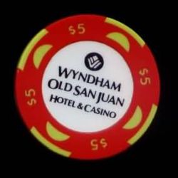 | 63. | Wyndham Old San Juan San Juan Puerto Rico, 5.00 Red chip, 4 yellow semicircle inserts, 4 horiz yellow inserts, circle inlay