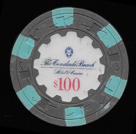 | 21. | Condado Beach Hotel San Juan Puerto Rico, 100.00 Gray chip, H&C mold, gear inlay, 6 light blue inserts