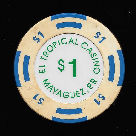 | 31. | El Tropical Casino Mayaguez Puerto Rico, 1.00 Beige chip, blue inserts, circle inlay