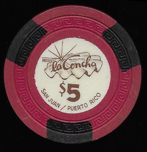 | 13. | Condado Beach Hotel San Juan Puerto Rico, 5.00 Brown chip, H&C mold, scalloped inlay, 4 turquoise inserts