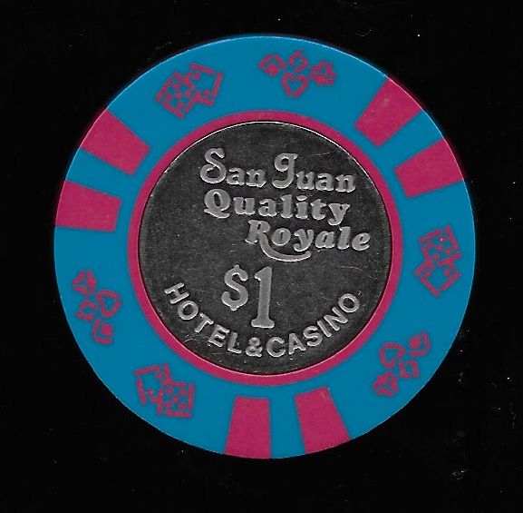 | 47. | Quality Royale San Juan Puerto Rico, 1.00 Blue chip, red inserts, coin center, DieSuits mold