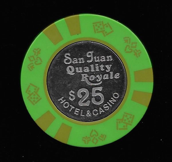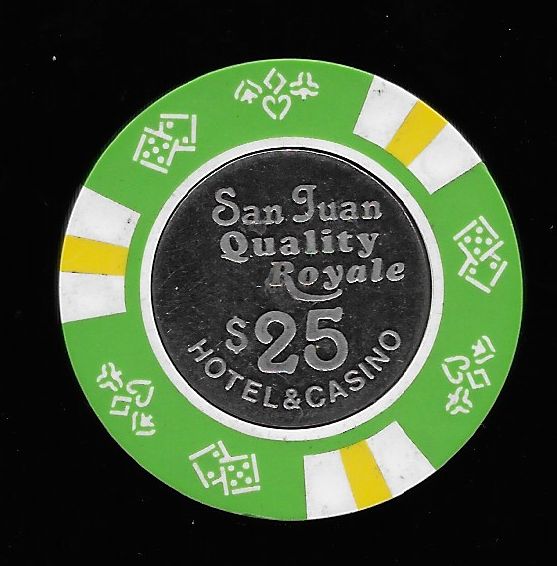 | 52. | Quality Royale San Juan Puerto Rico, 25.00 Green chip, white/yellow inserts, coin center, DieSuits mold