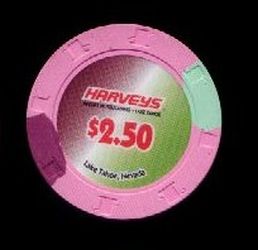 | 57. | Harvey's Lake Tahoe NV, 2.50 Gray chip, 3 purple/pink inserts, scalloped inlay, with panes