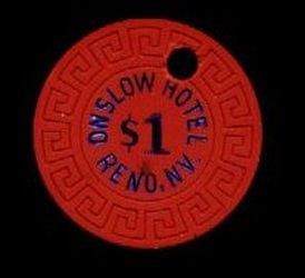 | 96. | Onslow Hotel Reno NV, 1.00 Red chip, large key mold, drilled, hotstamped